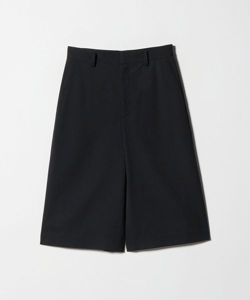 すっきりとした腰まわりに、ゆったり広がる膝丈のキュロット。