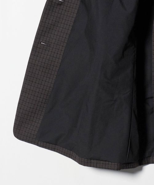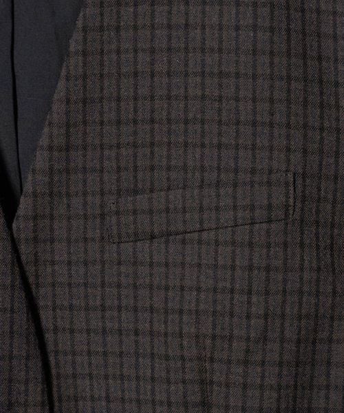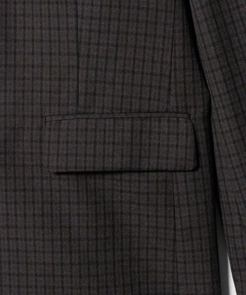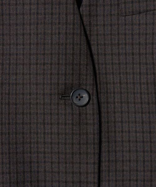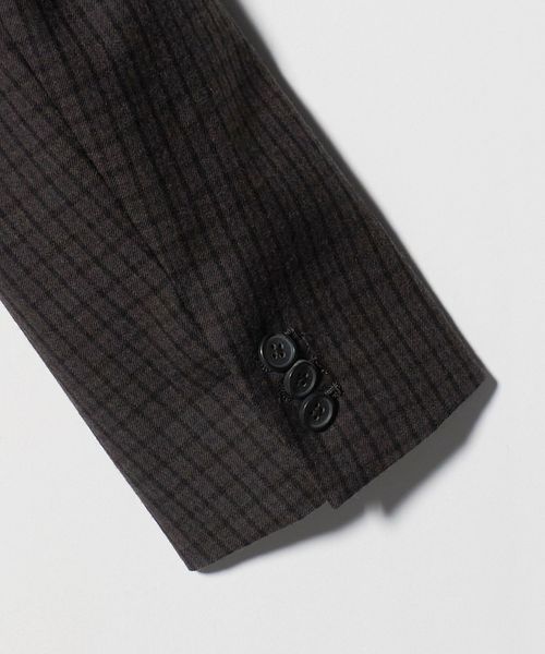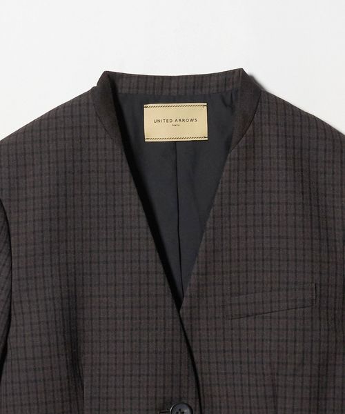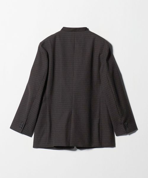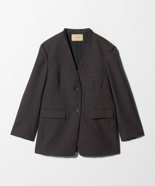 Vネックのノーカラー・シングル2ボタン仕様で、メンズライクな雰囲気漂うジャケット。