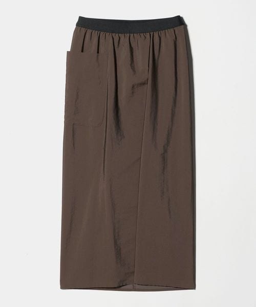 ラップ風のフロントタックが立体的な美しいフォルムを作るタイトスカート。