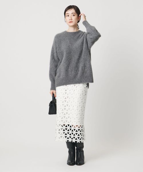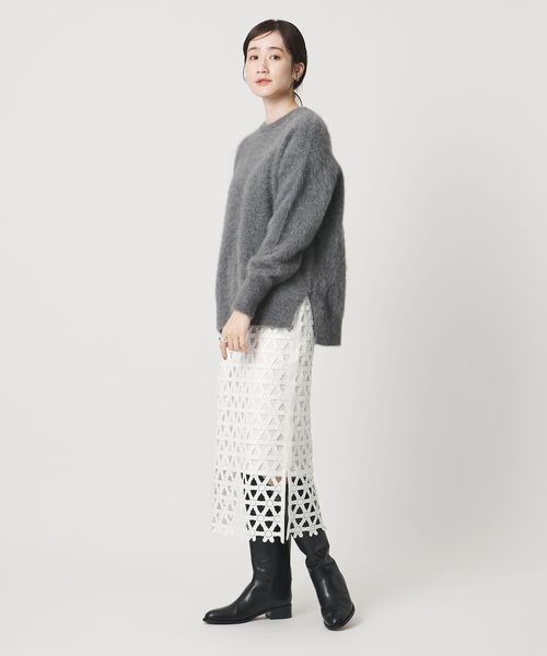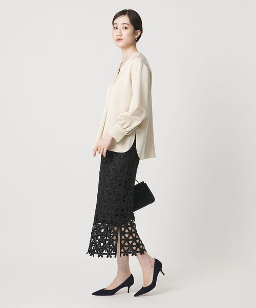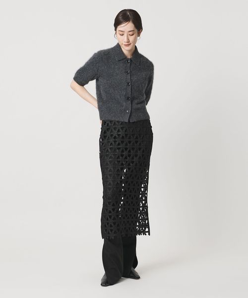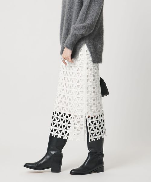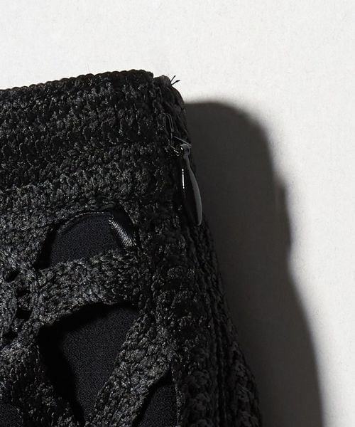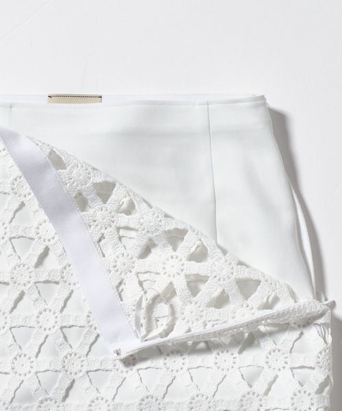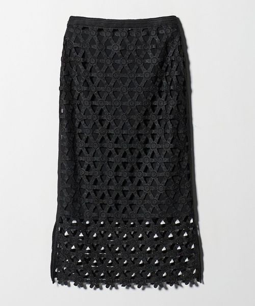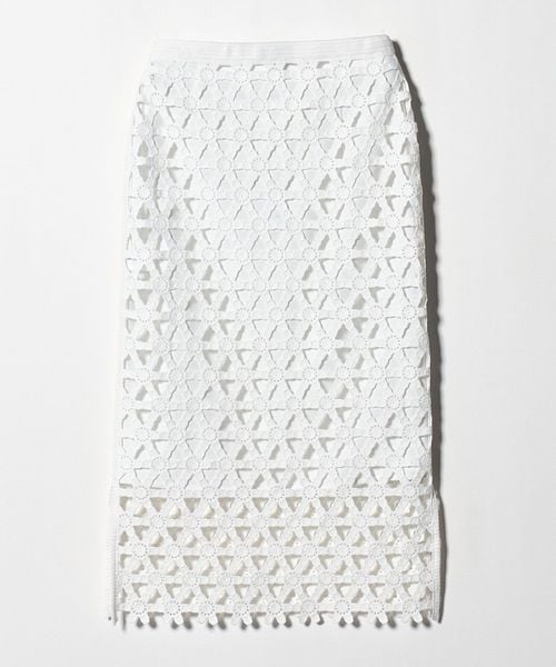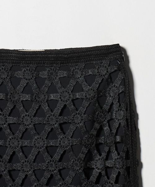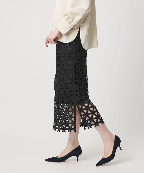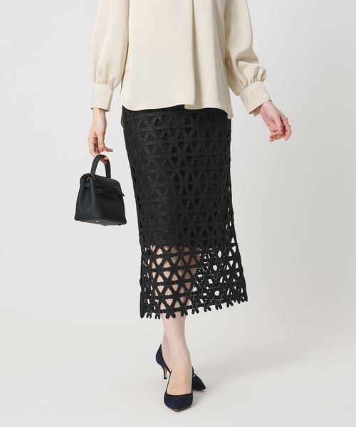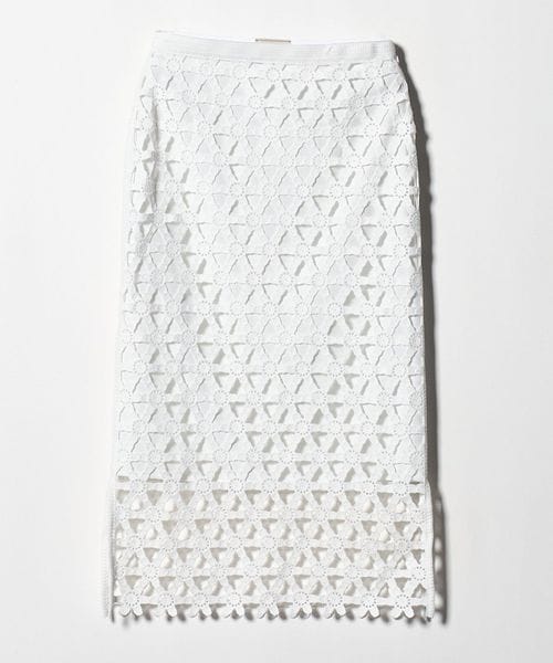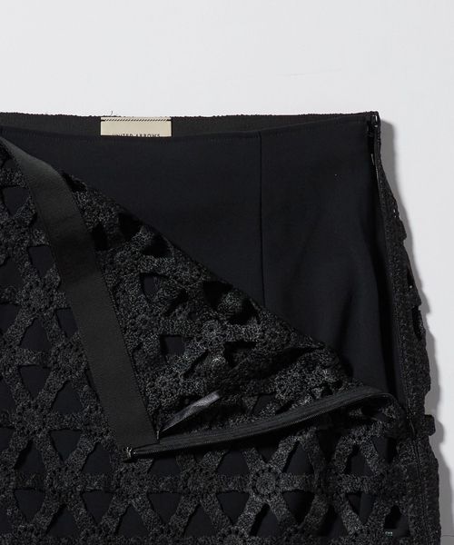 全体を刺繍で仕上げた大胆な透け感と立体感がポイントのタイトスカート。
