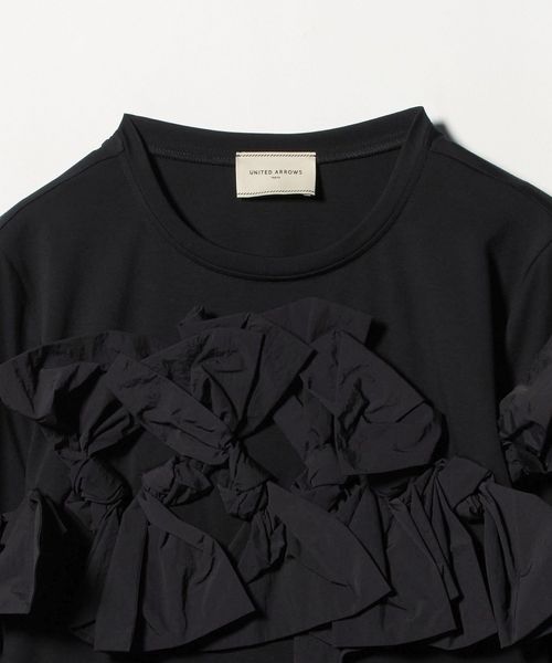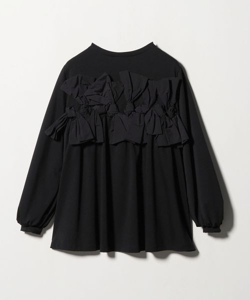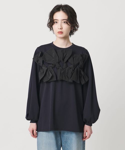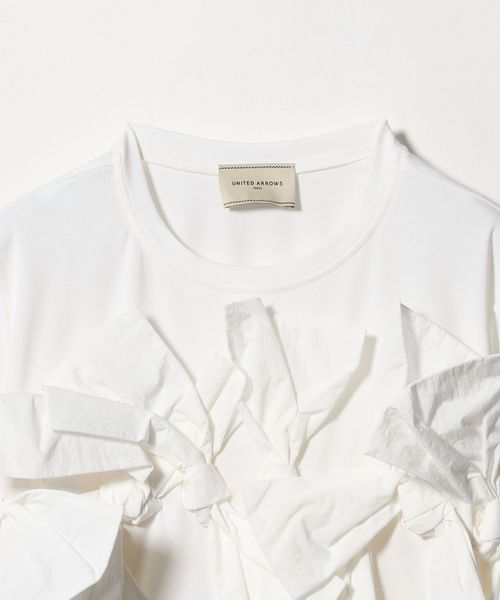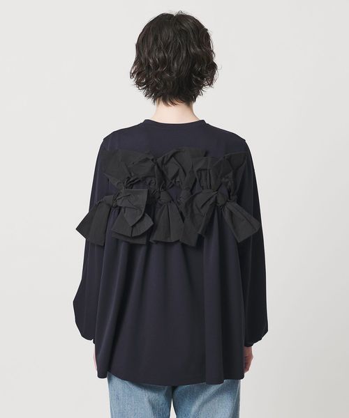 立体感のあるリボンモチーフを前後両面に大胆にあしらったデザインカットソー。