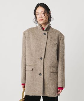 肩幅と身幅にゆとりをもたせたメンズライクな印象のジャケットコート。