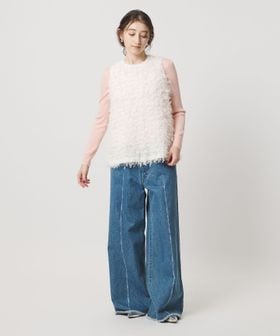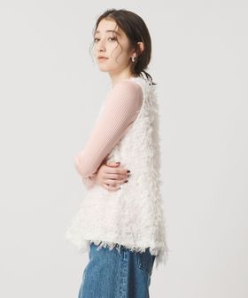 チュールと抄繊糸を撚糸した特殊な意匠糸で、シャーリング刺繍をほどこしファーのような毛足感を表現しました。