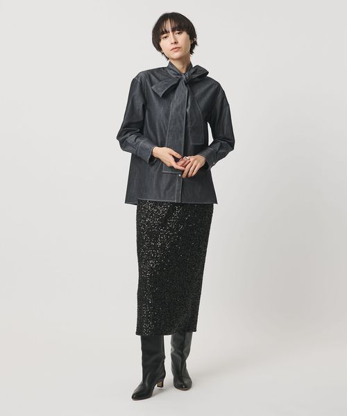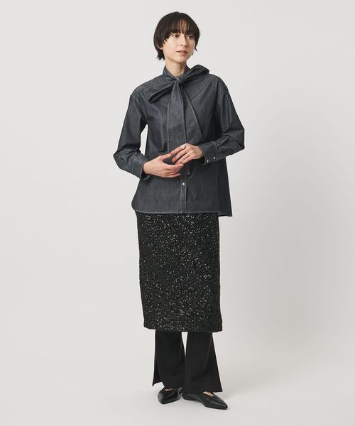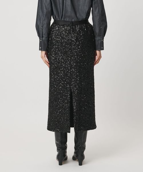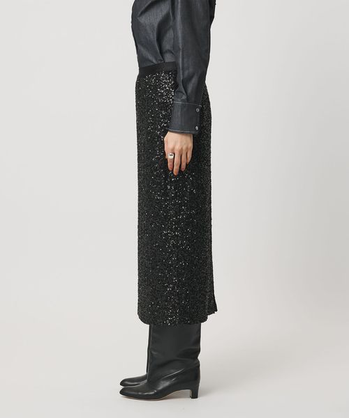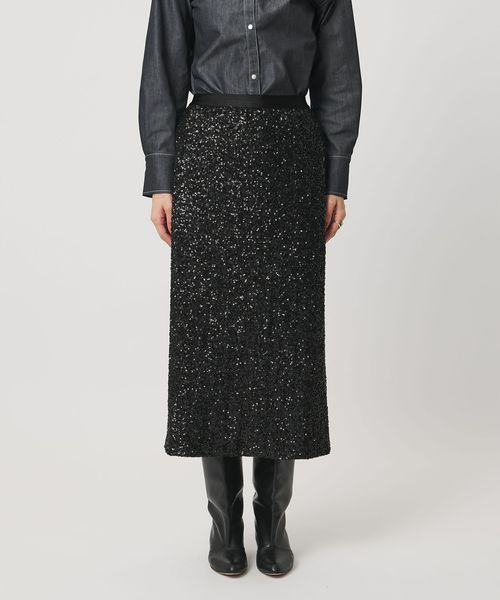 素材の特徴を生かしたシンプルなIラインシルエットのスカート。