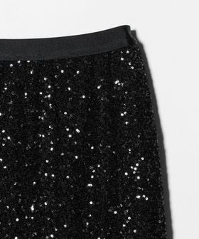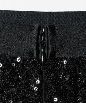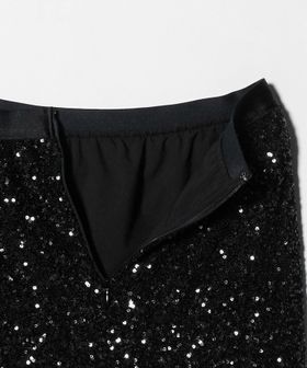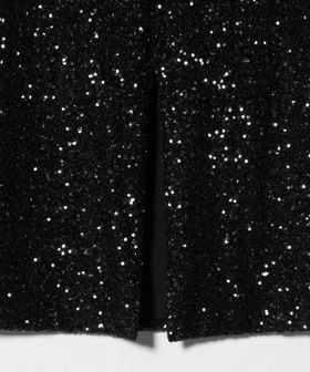 伸縮性を持たせたジャージベースの生地に華やかなスパンコールをほどこした生地。