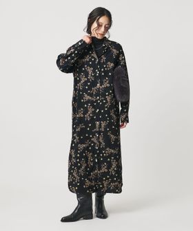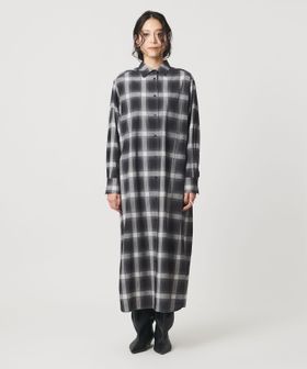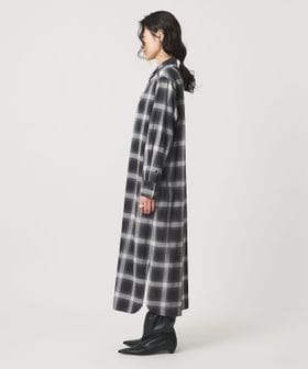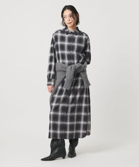 チェック柄とフラワープリントが目を惹くシャツワンピース。