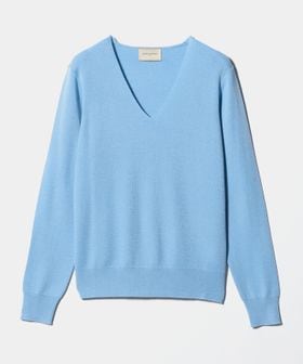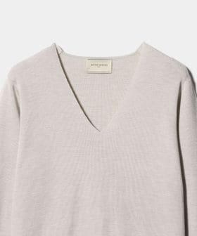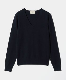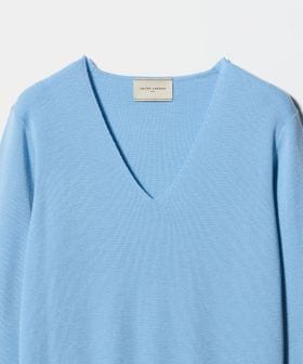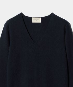 上質な細番手のインポート糸を贅沢にフルニードルで編みたてたVネックニット。