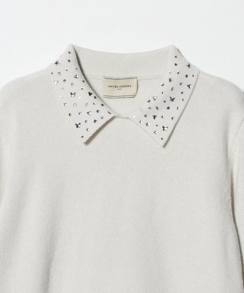 ラインストーン ポロ ニット