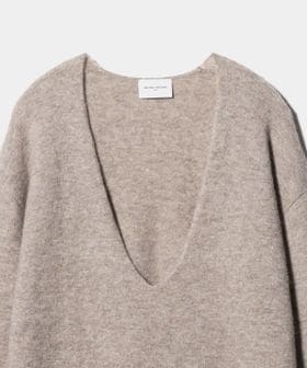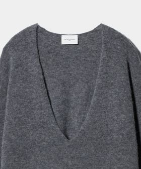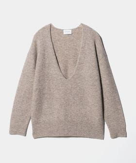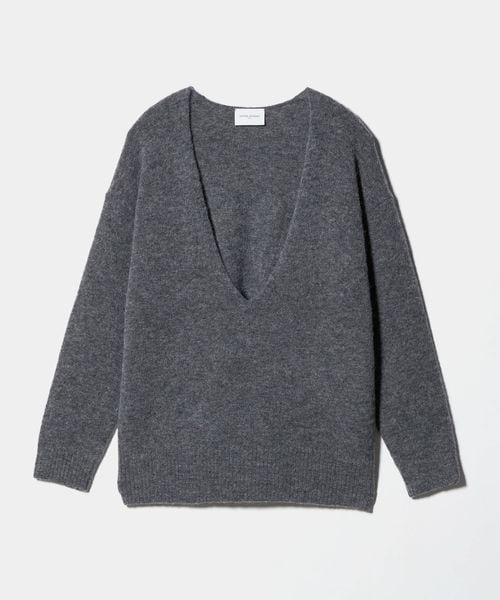 インナーとのレイヤードが映える、深めのVネックデザインのニット。