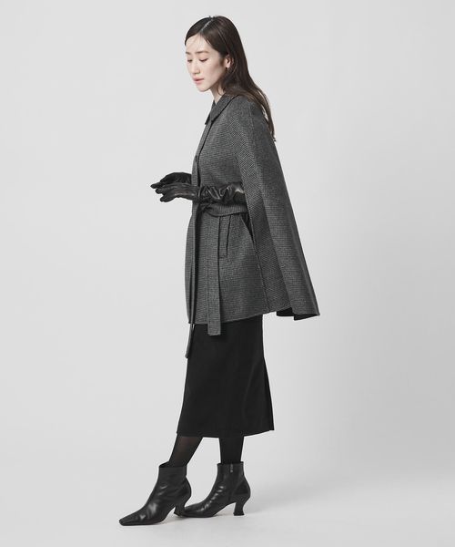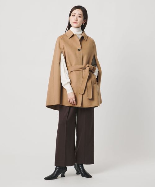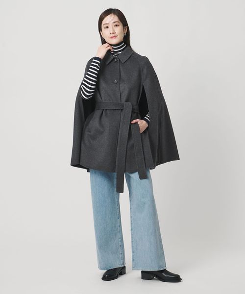 ストールを羽織っているかのような軽やかな着心地が特徴のケープミドルコート。