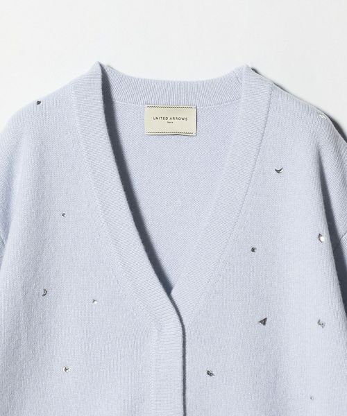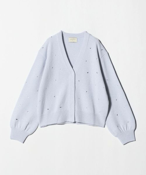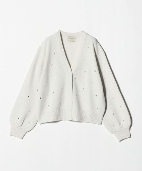 全体にいろいろな形のラインストーンをちりばめたカーディガン。