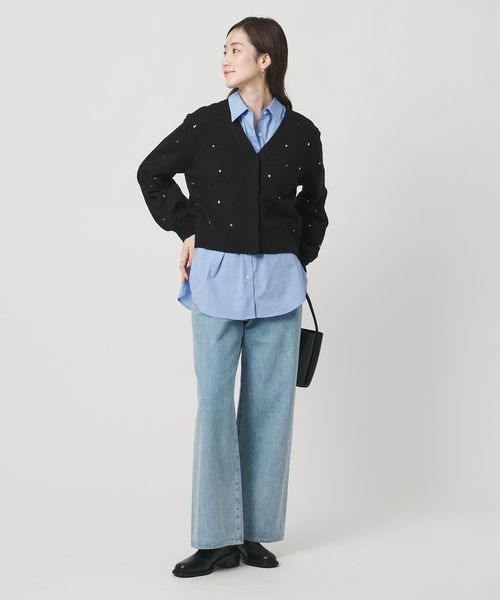 全体にいろいろな形のラインストーンをちりばめたカーディガン。