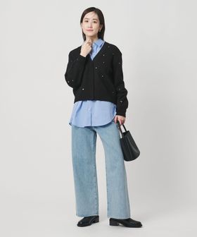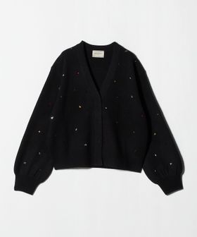 全体にいろいろな形のラインストーンをちりばめたカーディガン。