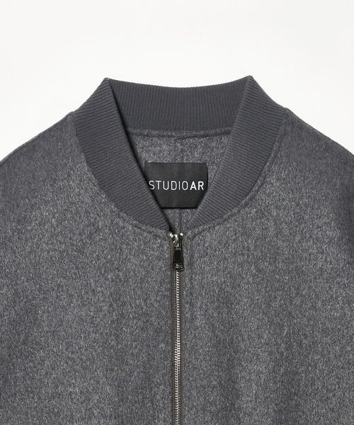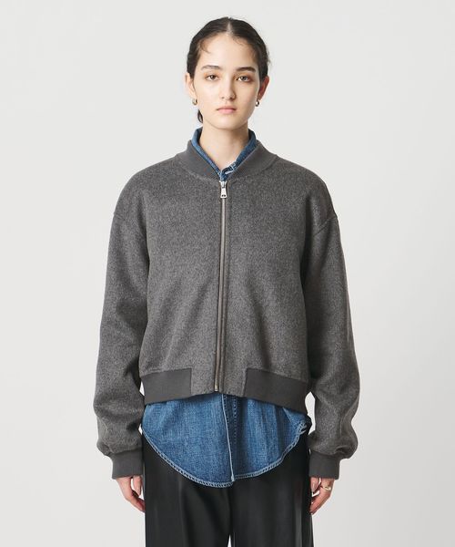 ボンバーシルエットとフロントジッパーが特徴のブルゾン。