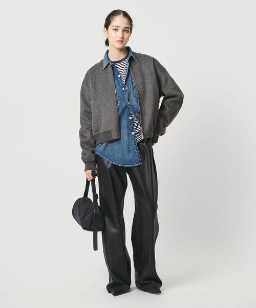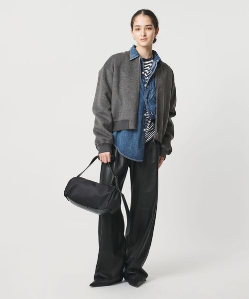 ナイロンだとカジュアルになりがちなジップブルゾンも、毛素材ならぐっと上品な印象に。