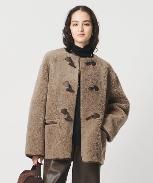 ボア素材では珍しいトグル仕様が目を引くコート。