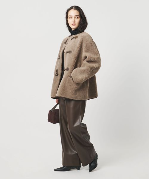 ボア素材では珍しいトグル仕様が目を引くコート。