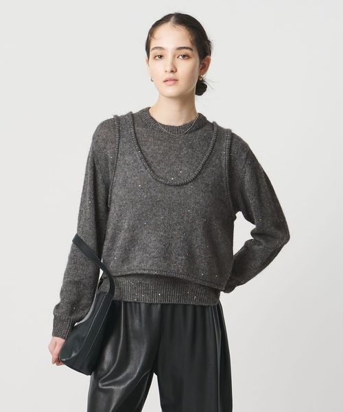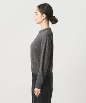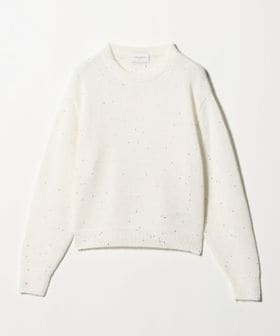 優しく軽やかな風合いの獣毛素材に、オリジナル配色の花形スパンコールがさりげなく輝くクルーネックニット。