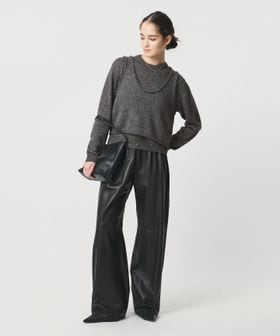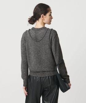 あたたかみのあるアルパカとウールを混紡した素材に、ラメ糸と選りすぐった配色の花形スパンコール糸を撚糸した素材を引き揃えた軽やかな天竺素材。