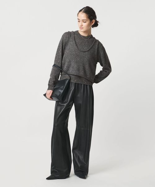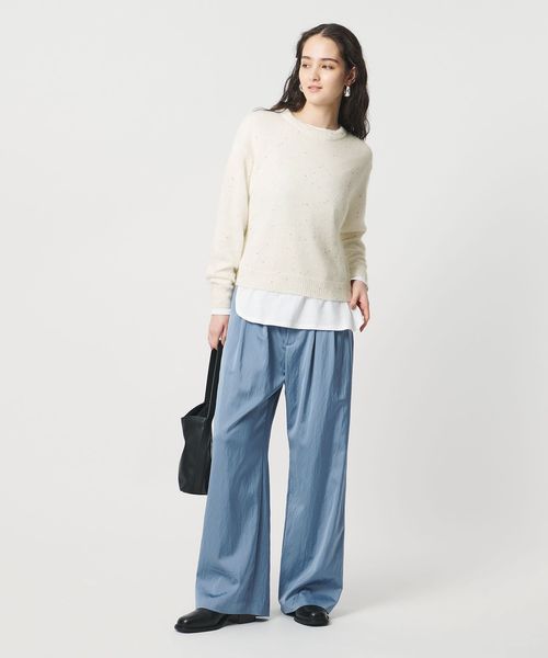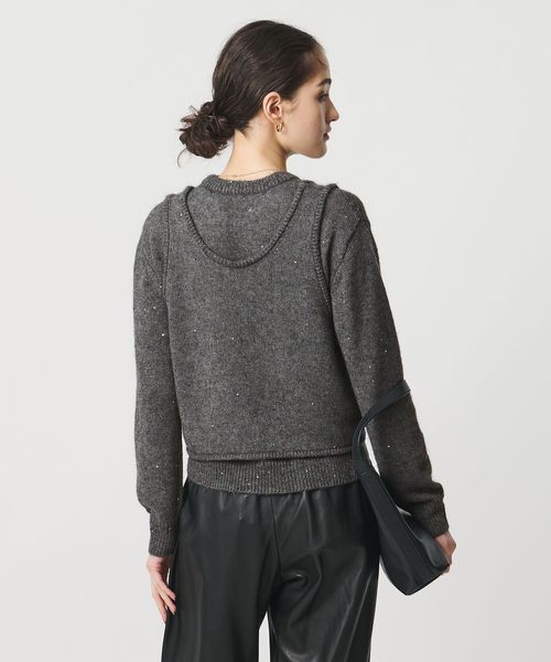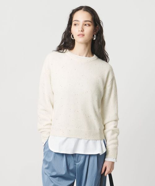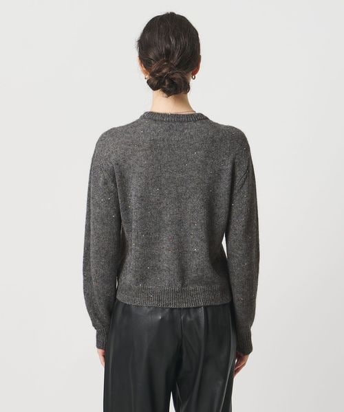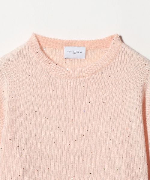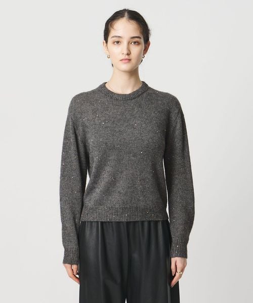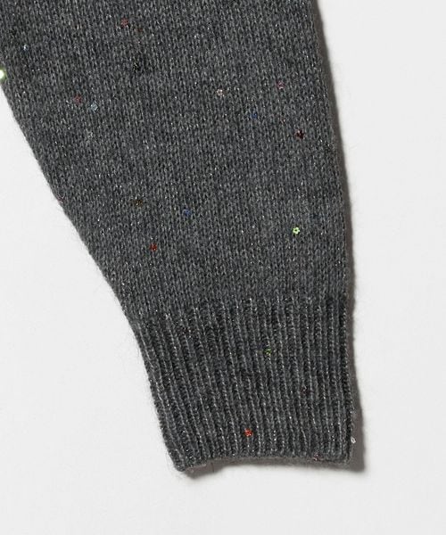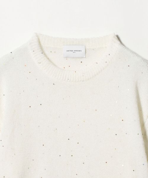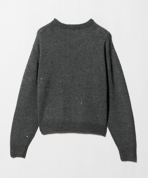 優しく軽やかな風合いの獣毛素材に、オリジナル配色の花形スパンコールがさりげなく輝くクルーネックニット。