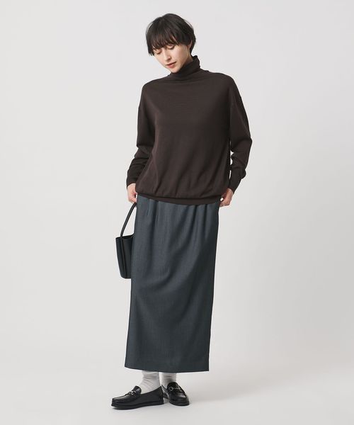 おさまりの良い素材感でウエストインももたつかず、タックパンツやスカートとの合わせもスマートに決まります。