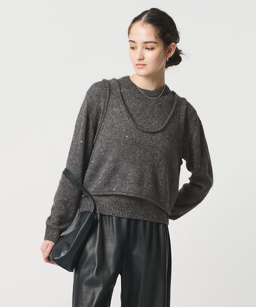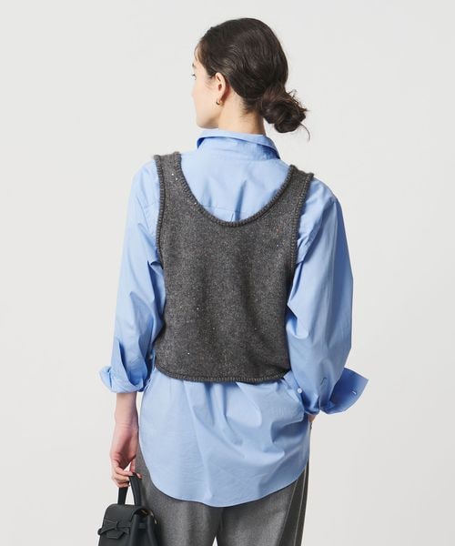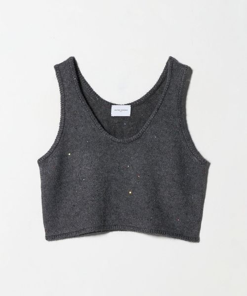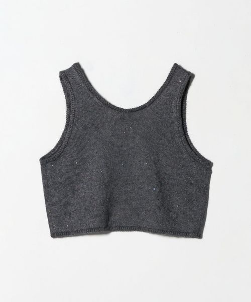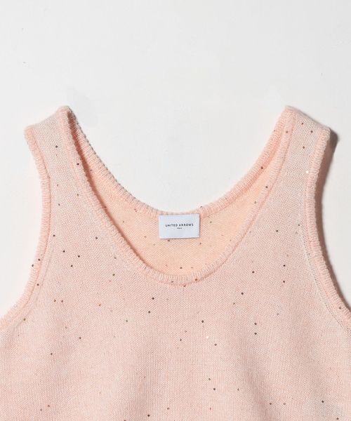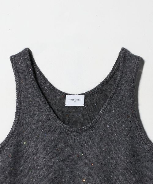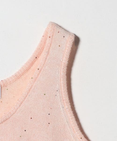 優しく軽やかな風合いの獣毛素材に、オリジナル配色の花形スパンコールが控えめに煌めくノースリーブトップス。