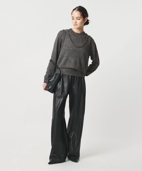 同素材のロングスリーブニットと合わせれば旬なムードを演出できます。