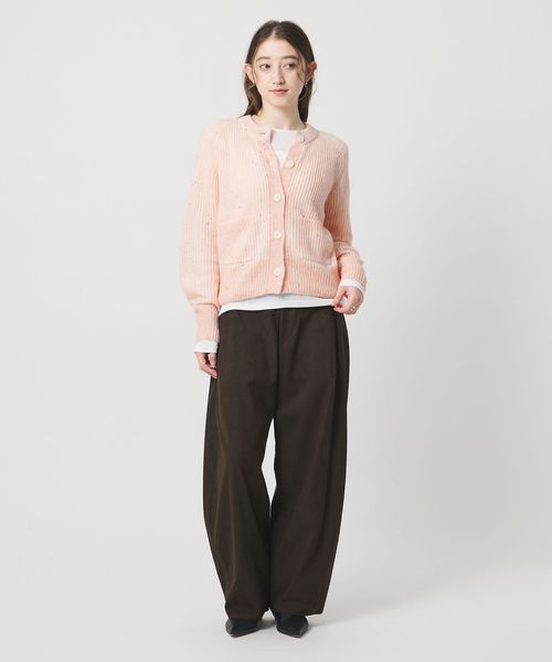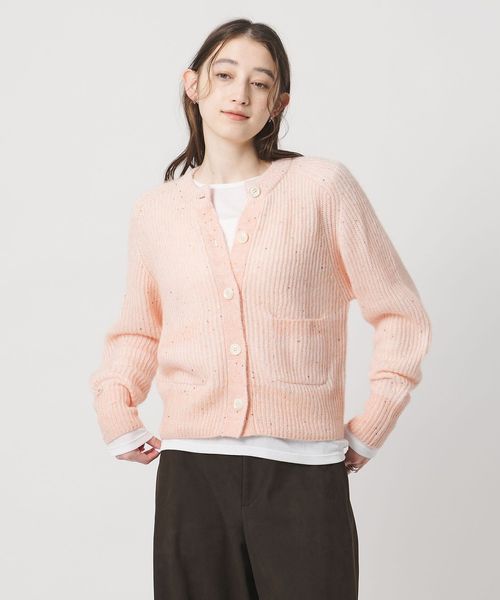 優しく軽やかな風合いの獣毛素材に、オリジナル配色の花形スパンコールがさりげなく輝くカーディガン。