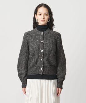 優しく軽やかな風合いの獣毛素材に、オリジナル配色の花形スパンコールがさりげなく輝くカーディガン。