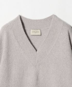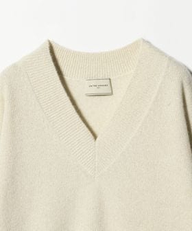 襟周りの太めのリブがさりげないアクセントのVネックニット。