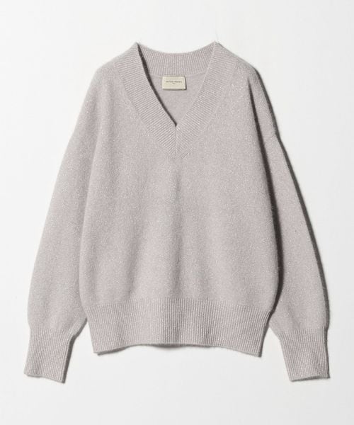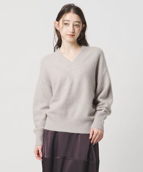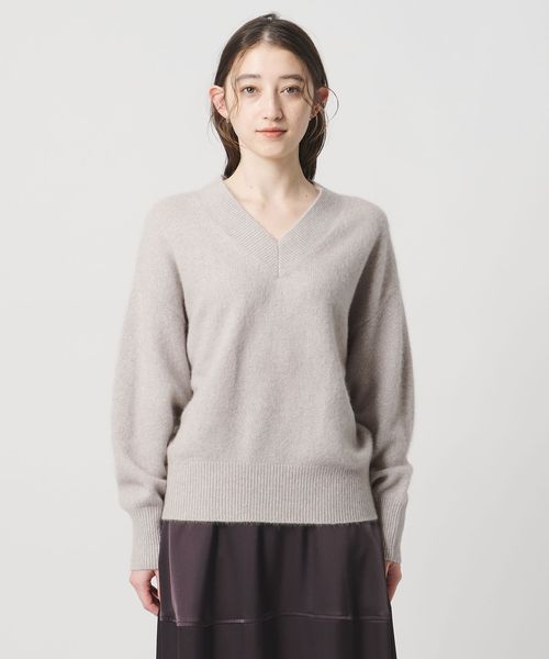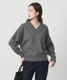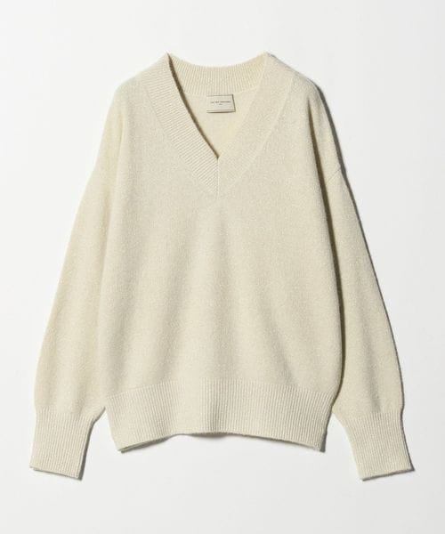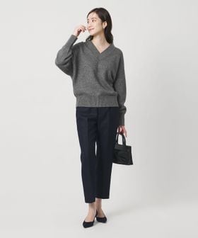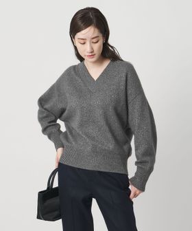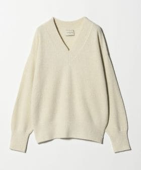 襟周りの太めのリブがさりげないアクセントのVネックニット。