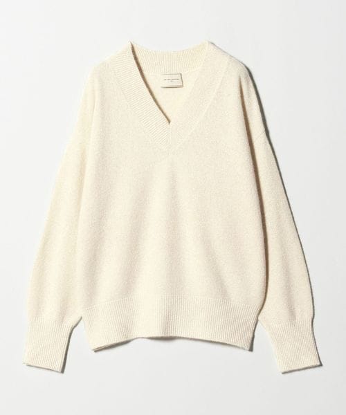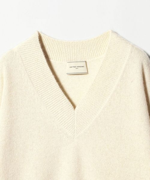 襟周りの太めのリブがさりげないアクセントのVネックニット。