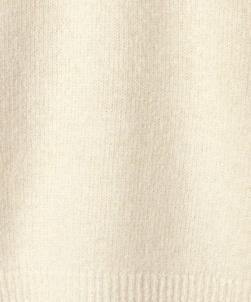 滑らかな手触りとふわふわとした毛足感が特長のフォックスウールナイロン素材をベースに、細番手のラメ糸を表側にプレーティングで編みこんだ天竺編地。