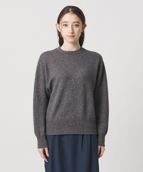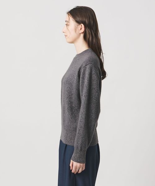 コンパクトですっきりとしたラメ入りクルーネックニット。