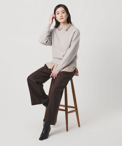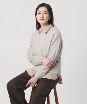 コンパクトですっきりとしたラメ入りクルーネックニット。