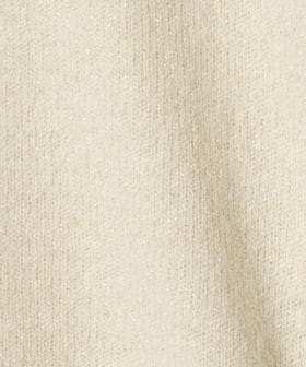 滑らかな手触りとふわふわとした毛足感が特長のフォックスウールナイロン素材をベースに、細番手のラメ糸を表側にプレーティングで編みこんだ天竺編地。