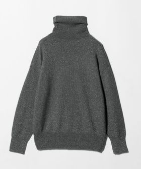 ドロップショルダーで着丈も長め、ゆったりサイズでリラックス感のあるラメ入りタートルネック。