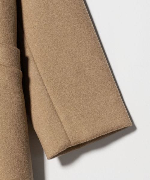 糸ムラが少なく糸に弾力を持たせるミュール紡績で紡績した糸をタテヨコに使用し、手持ち感・膨らみ感を出すために二重織り組織にしたユナイテッドアローズ別注素材を使用。