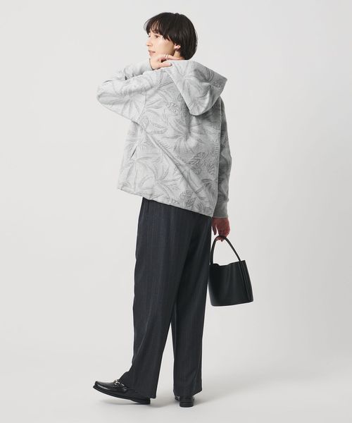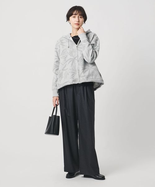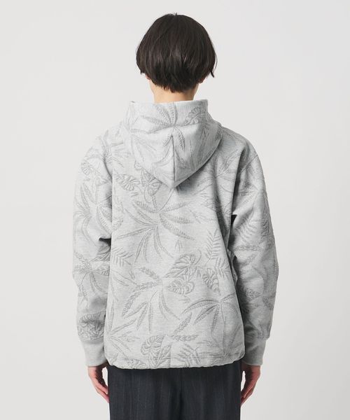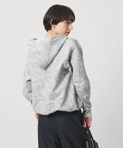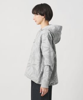 スウェットのカジュアル感にボタニカル柄の女性らしさがプラスされたパーカー。