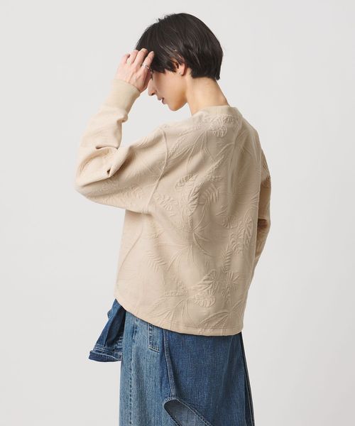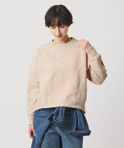 スウェットのカジュアル感にボタニカル柄の女性らしさがプラスされたスウェット。