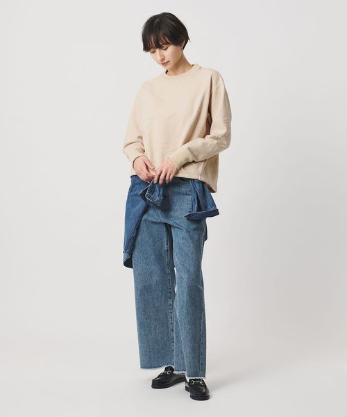 前後差のある裾は、気になるヒップ上をやや隠しつつ、フロントはすっきりと見せてくれます。