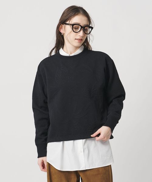 スウェットのカジュアル感にボタニカル柄の女性らしさがプラスされたスウェット。
