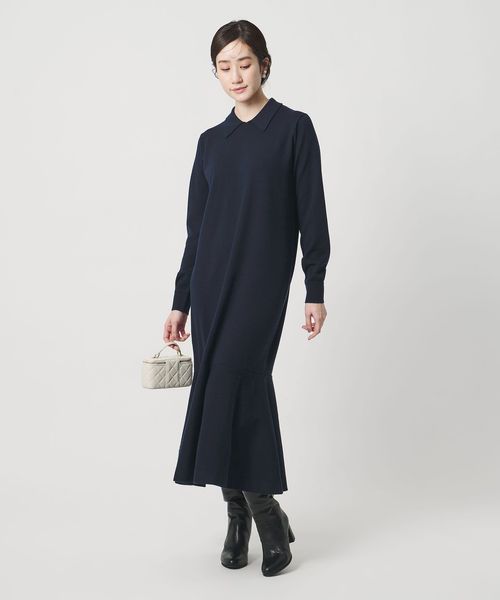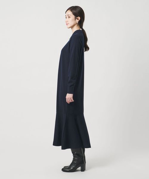 裾の低い位置にペプラムデザインをプラスする事で、フェミニンながらもほどよくシャープな印象に仕上げたワンピース。