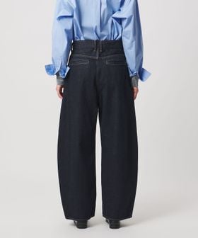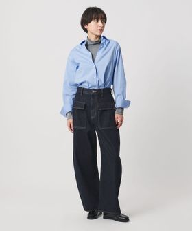 スタイルアップが叶うハイウエストのセミワイドラインで、ベーシックな5ポケットデニムよりも、しなやかでフェミニンな印象に。