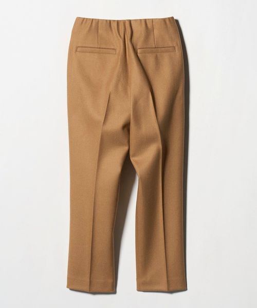 裾に向けて細身になるテーパードシルエットのパンツ。