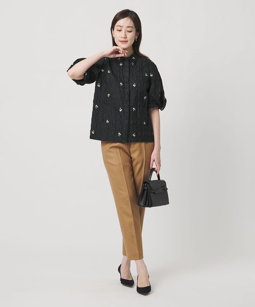 スクエア フラワー ジャガード ブラウス