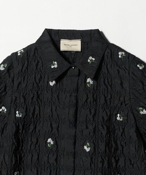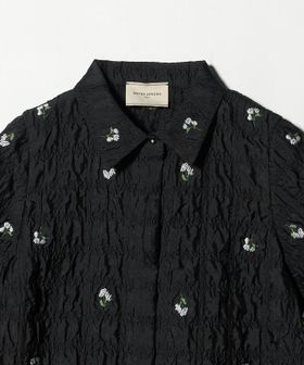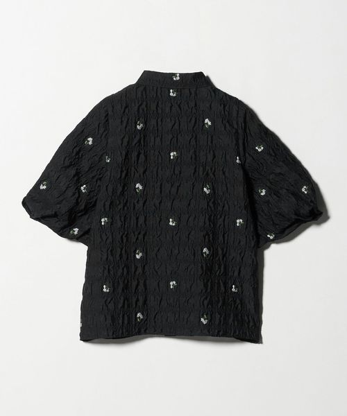 ギボシ留めと比翼仕立ての前立てが、上品でクリーンな印象を与えるショートスリーブブラウスです。