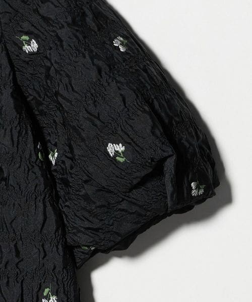 裏地で吊ることで、素材の風合いを活かした立体的なバルーンスリーブが際立つデザイン。