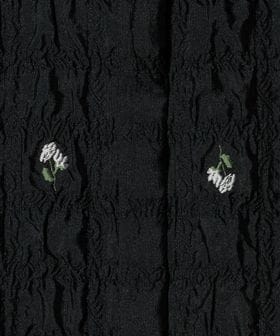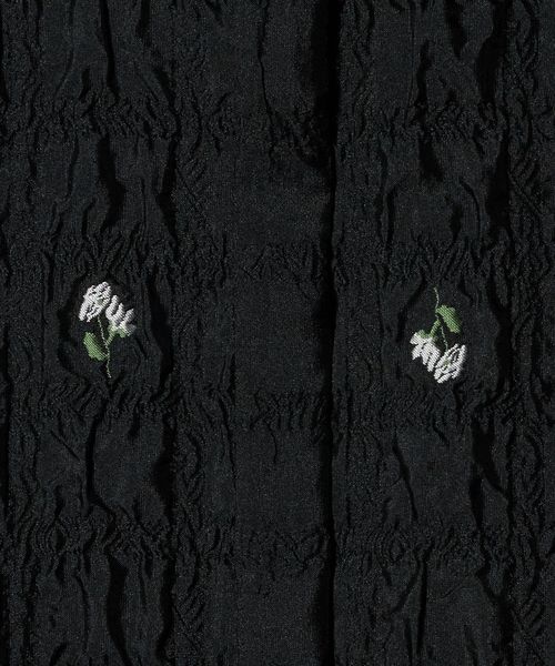 フクレジャガードで格子チェック柄を構成し、小花柄の刺繍を施しました。