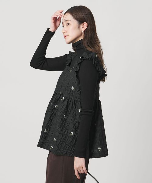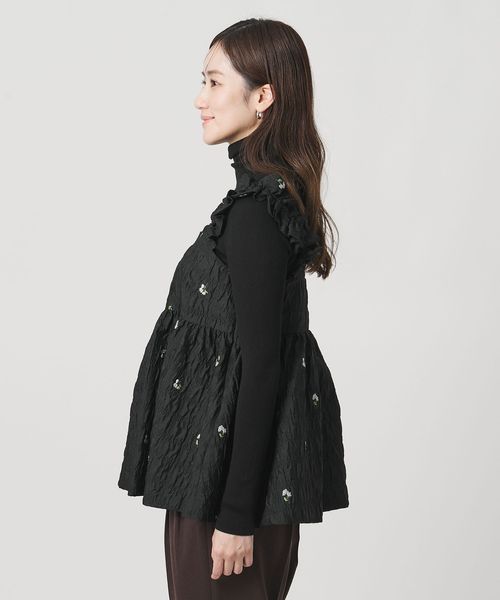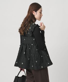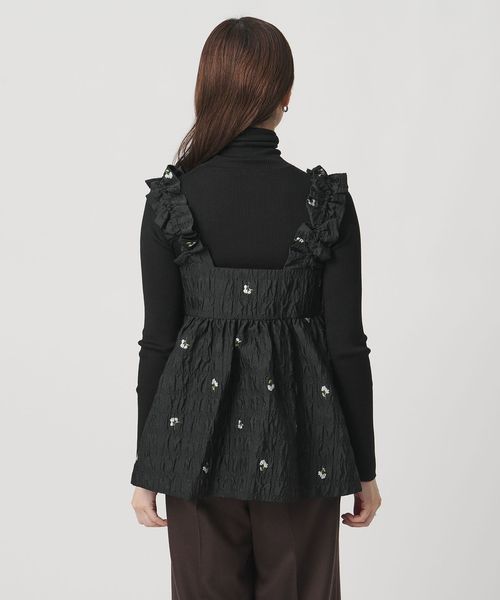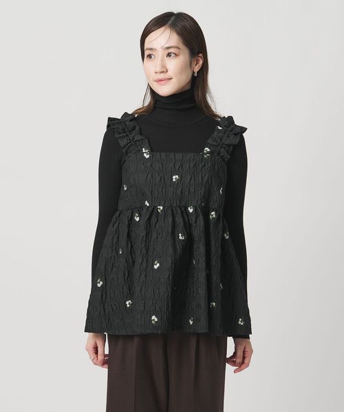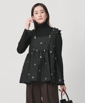 ギャザーを寄せ立体的で華やかな肩紐がポイントのペプラムディティールキャミソール。